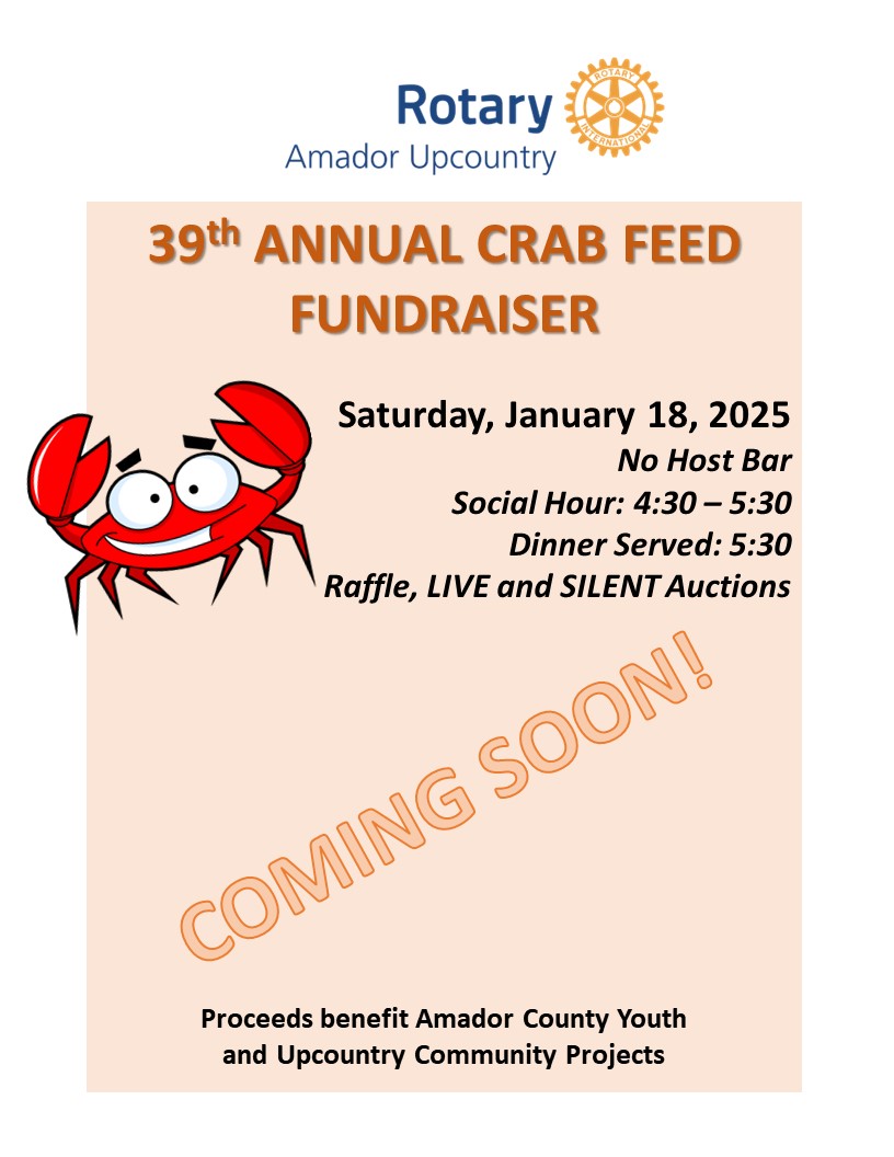 For almost 40 years the Upcountry Rotary Club has hosted an annual Crab Feed at our Lady of the Pines Church in Pioneer. USUALLY, it is the third Saturday in January.